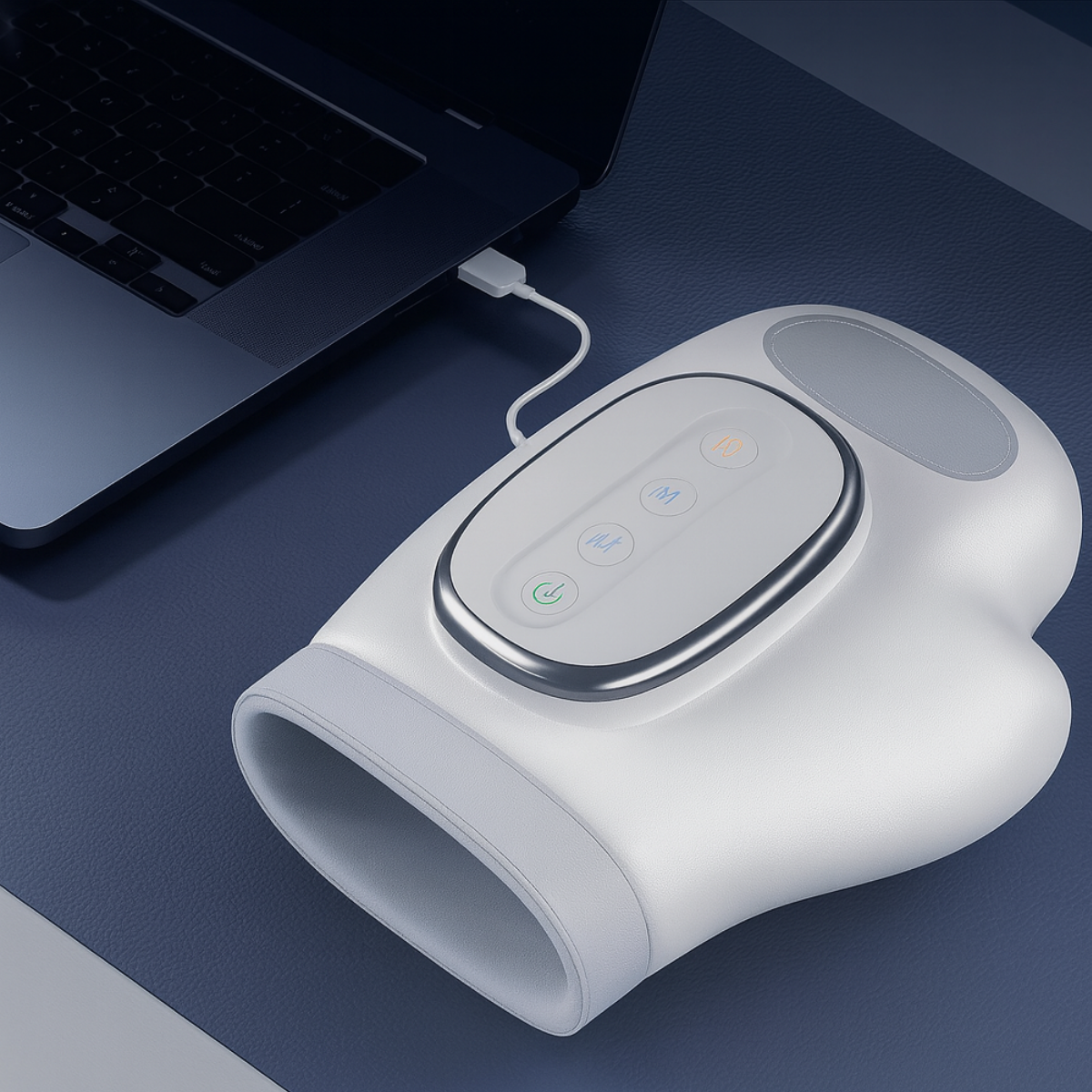 By combining therapeutic heat, multi-level compression, and targeted massage, HandThera™ replicates professional therapy techniques to: