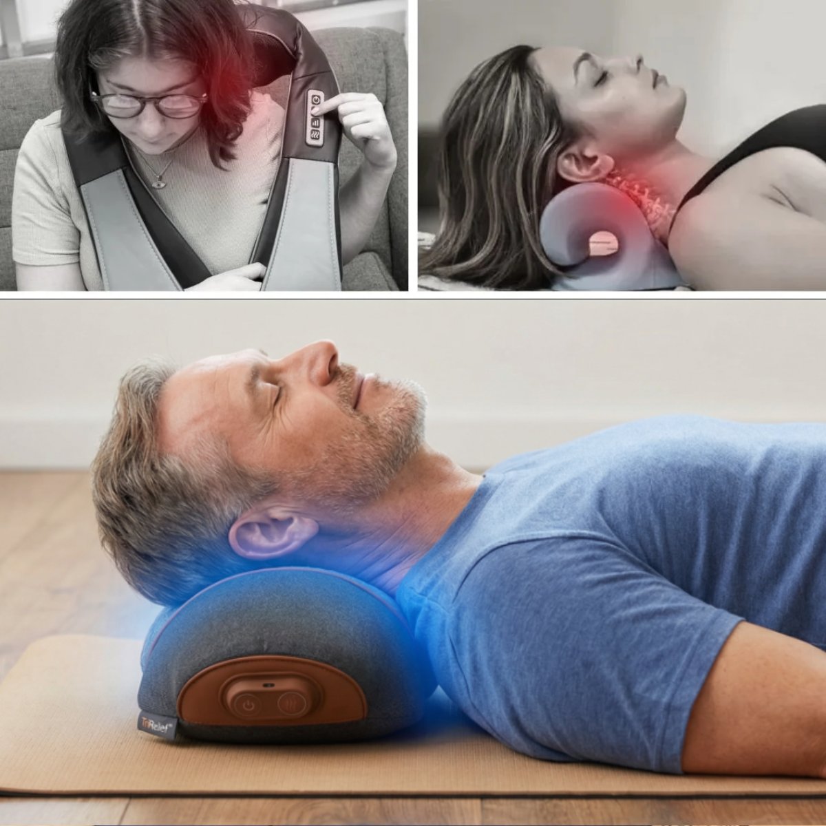 TriRelief™ combines therapeutic massage, restorative heat therapy, and cervical traction, all cleverly packaged into a device you can use in the comfort of your home.